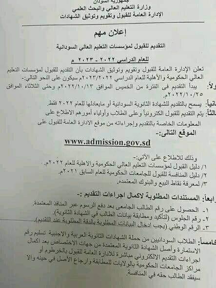 اخبار محلية تحديد موعد بداية التقديم الإلكتروني للجامعات اسفير نيوز بواسطة إسفير نيوز في أكتوبر 10, 2022 0 شارك اسفير نيوز أعلنت الإدارة العامة للقبول وتقويم وتوثيق الشهادات بأن التقديم للقبول لمؤسسات التعليم العالي الحكومية والأهلية للعام الدراسي 2022-2023م سيبدأ من الخميس 13 أكتوبر وحتى الثلاثاء 25 أكتوبر . اضغط هنا للانضمام لقروب الواتسب التقديم الإلكترونيالتقديم الإلكتروني لمؤسسات التعليم العاليالجامعات 0 شارك FacebookTwitterWhatsAppTelegram