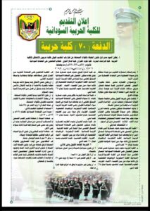 وقال في إعلان إنه يتم استلام استمارات التقديم من قيادة منطقة وادي سيدنا العسكرية ومن الوحدات العسكرية من المدن الأتية” بورتسودان، القضارف، مدني، دنقلا وعطبرة، الأبيض كوستي، الدمازين، كسلا، سنجة شندي، مروي، سنكات، خشم القربة، أبو جبيهة وسنار”